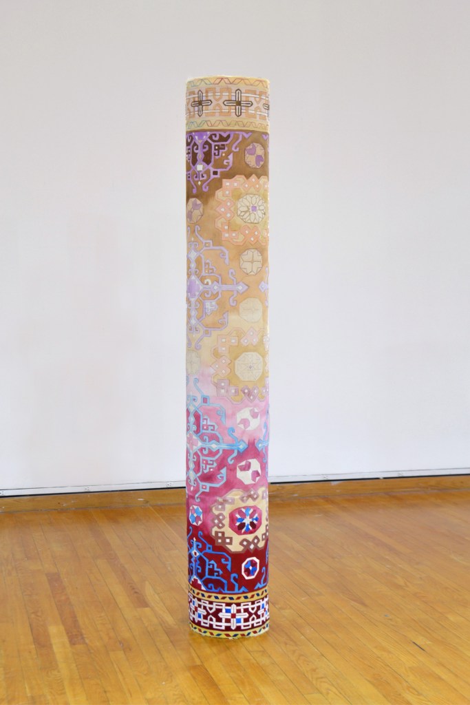 This body of work imagines the movement of historically known Ottoman-era Anatolian rugs departing and transforming as its own individual being. The rugs are originally known to be incorporated within Renaissance-era paintings such as the works of Lotto, Bellini, and Holbein. After learning that the rugs were adopted titles after the surnames of specific Renaissance painters in order to distinguish the patterns, the identity of the rugs has led me to believe that they objectively are both praised yet be seen as inferior in where they originate culturally and religiously. For me, the rugs incorporated within the original Renaissance works function as a decorative and/or background prop which enhances the work to be viewed as this grandiose representation of Christian iconographic depictions as well as an ethnically cleansed that is removed of its original purpose. Acknowledgement alone of mentioning the rugs and where it originated does not justify the historical and narrative gain that the Renaissance-era carries for representing the rugs as their own.